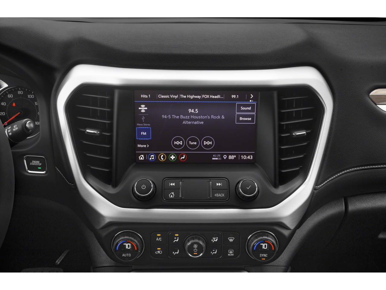 - 8" diagonal GMC Infotainment System with Navigation, includes multi-touch display, AM/FM/SiriusXM1 radio