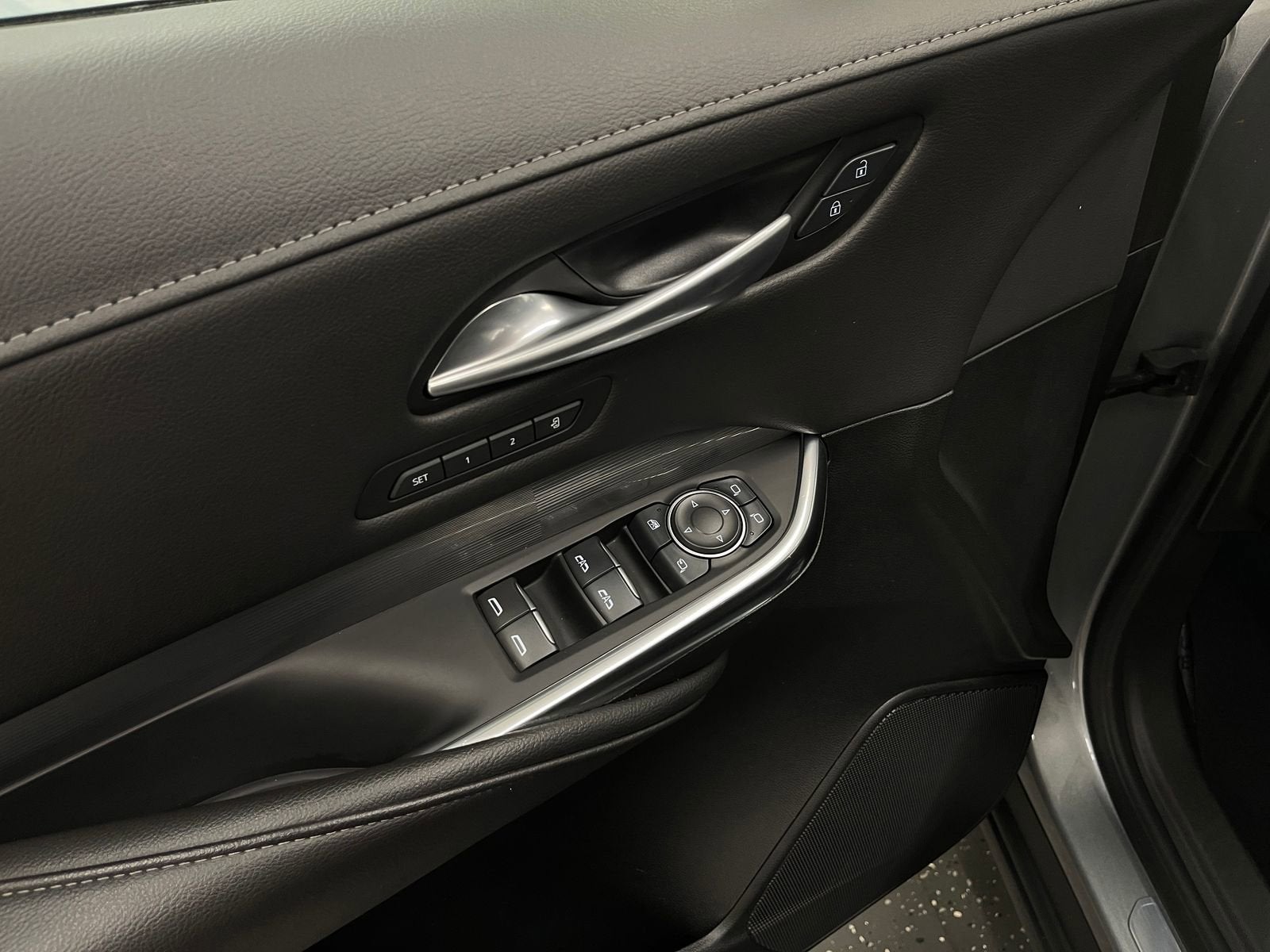 - Opens or closes when the system senses the key fob and the driver extends their foot under the left-hand side of the rear bumper over an image of the Cadillac Crest projected under the vehicle